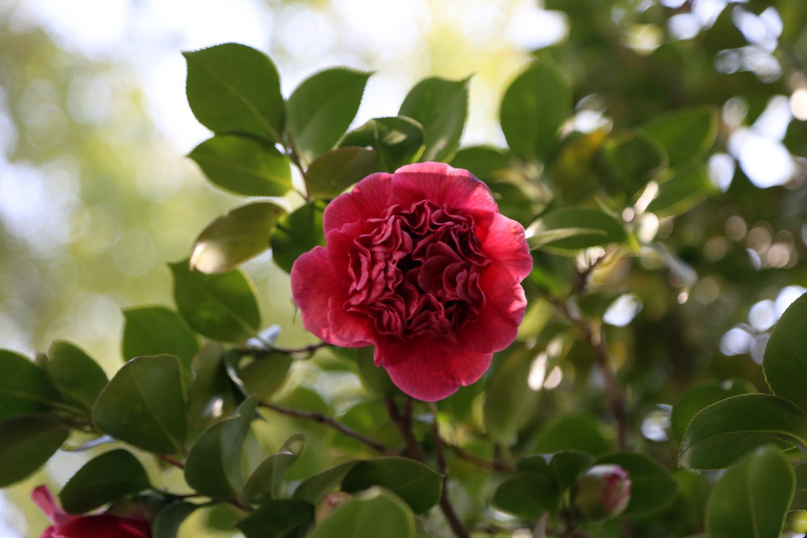 漫步在公园,微风拂过,山茶花随风摇曳,散发出阵阵清香,令人心旷神怡。盛开的花瓣层层叠叠,硕大的花朵缀满枝头,重重叠叠的花瓣如同红绸精心雕琢,细腻而富有质感。