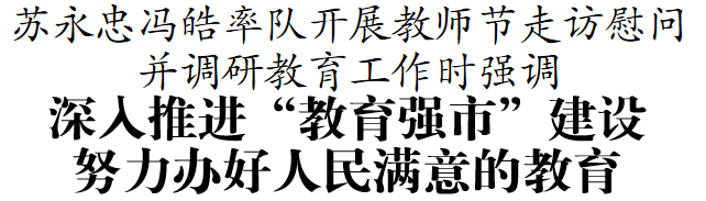 苏永忠、冯皓分别率队到市幼儿园、市实验中学、市第一中学、市实验小学、市实验幼儿园、市民族中学,看望慰问一线教师,送上节日祝福,实地调研学校思政课建设、基础设施建设等情况。