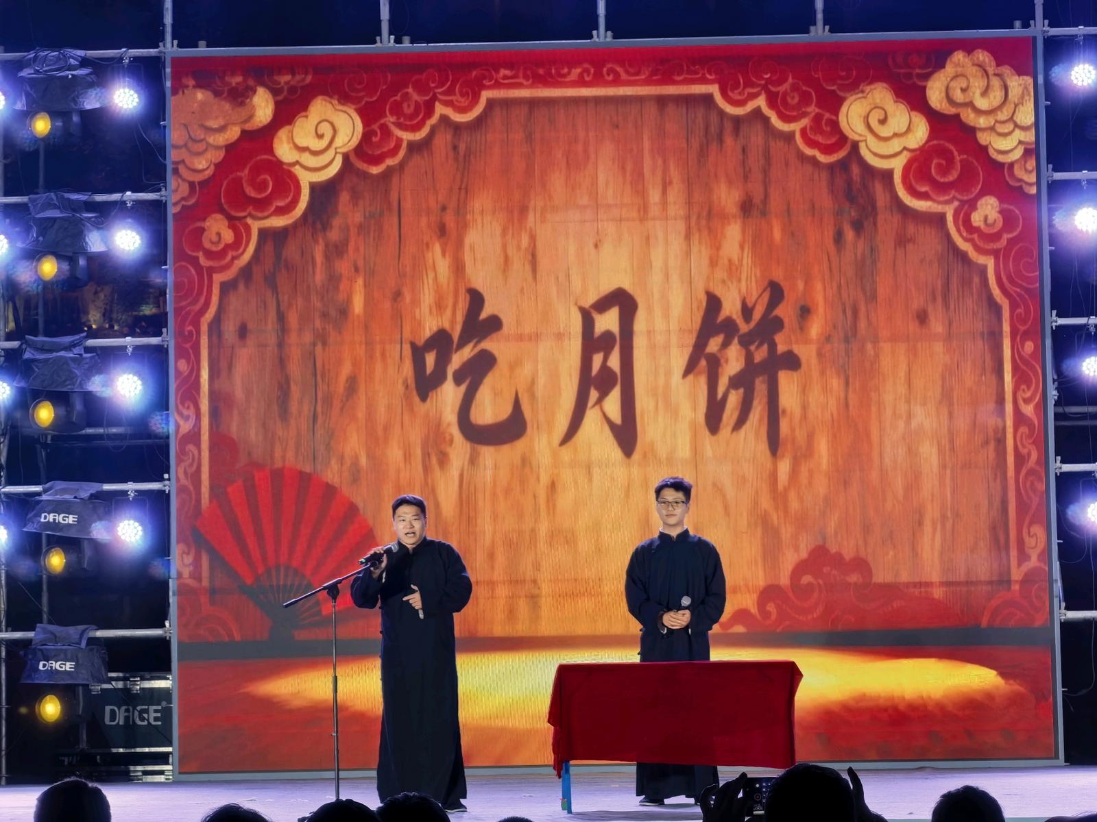 晚会在《水调歌头》的朗诵声中拉开序幕。琅琅诵读声引领观众穿越千年,与东坡居士一同“把酒问月”,感受古人对于宇宙和人生的深邃思考。随后,群舞《明月引》以惊鸿之姿演绎出“虹裳霞帔步摇冠”的盛唐气象,舞者们用优美的肢体语言再现了大唐风华,令观众仿佛梦回千年,共沐月华。相声《吃月饼》则从历史传说走入人间烟火,用幽默风趣的方式讲述了月饼文化的发展变迁。表演者妙语连珠,在笑声中带领观众“用舌尖丈量千年文化”。