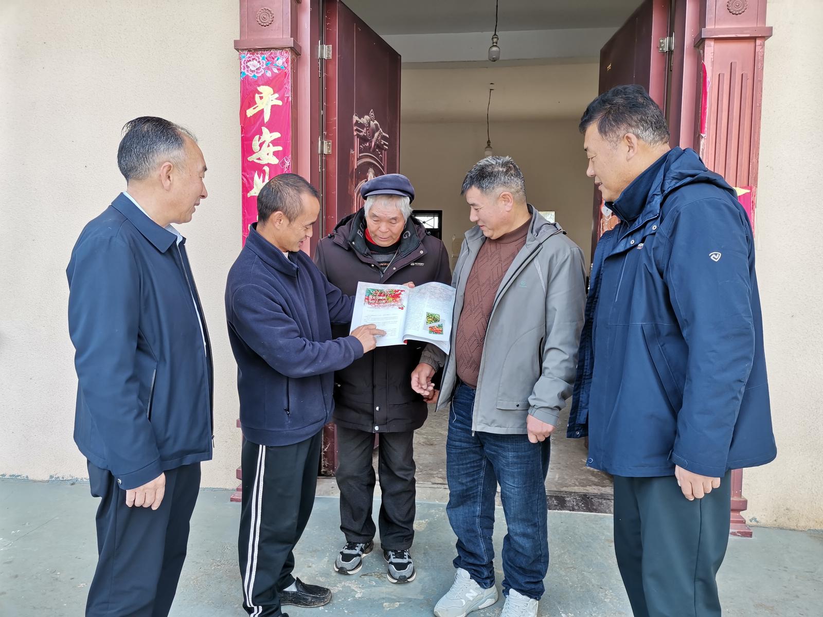 驻村工作队和沈家沟村委会把刊有樱桃种植户陈光啟先进事迹的刊物送到该村民手中。