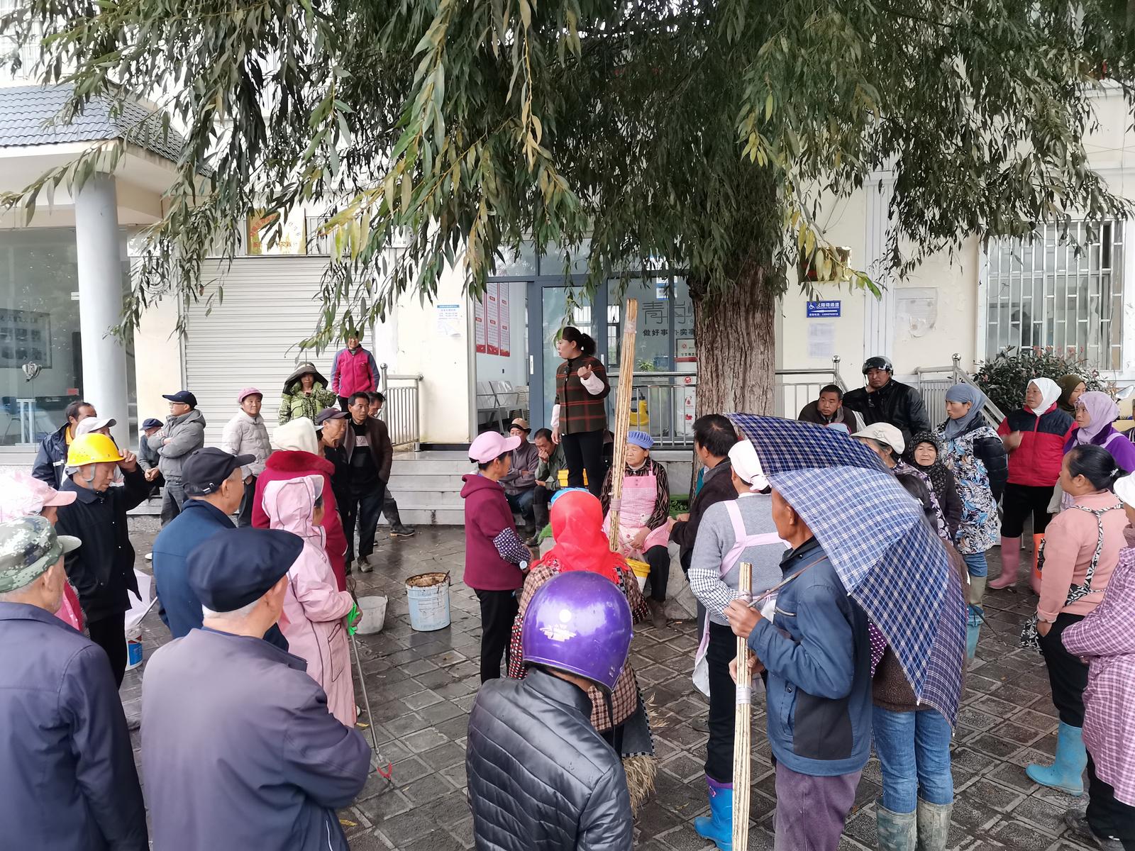 青岗岭村院坝会宣传党的富民政策和村里的先进事迹。