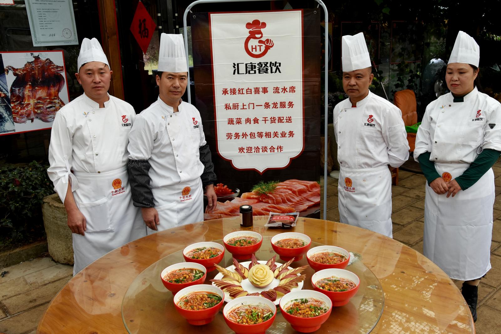 11月5日,一场别开生面的苹果宴在昭阳区苏家院迤那村骡马河垂钓山庄热闹开席。汇唐餐饮的厨师赵静、孟会堂带着特色“老昭通黄焖酱料”,将昭通苹果与当地食材巧妙融合,烹制出10余道创意菜品,让昭通苹果吃出新花样。