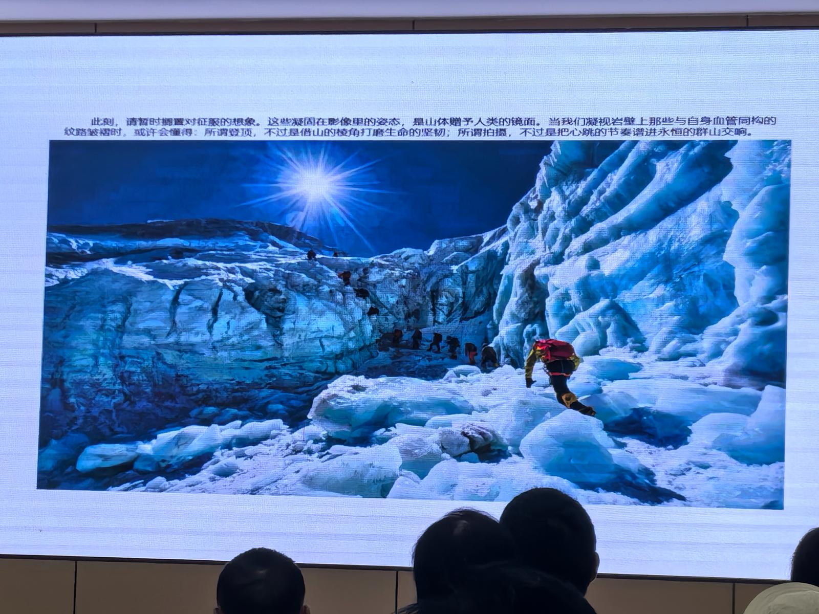作为一名极限摄影师,龙江10多年来在世界多座8000米级高峰之巅行走,用镜头对极限摄影做了十分勇敢的探索。他以《从客观记录到当代摄影的艺术表达》为题,结合自己10余年从事极限摄影的创作经历和摄影作品,从“看山是山”“看山不是山”和“看山还是山”三个阶段,对应其创作的三个系列作品作了精彩的讲解。他表示:“《群山之巅》更强调的是即时性,在按下快门的瞬间,它必须是正在发生的,是纯粹的客观记录;《绝命海拔》注重的是叙事性,人和自然、生存和死亡的关系;《山在那里》更倾向于去记录一个可以验证的客观现实,会更强调一种历时性,就是你在一个时间的长河当中去反思这件事件的意义,它更强调的是去探索视觉和意义之间的关系。”“我们登山不是为了让世界看到我们,而是能让自己看到另一个世界。”