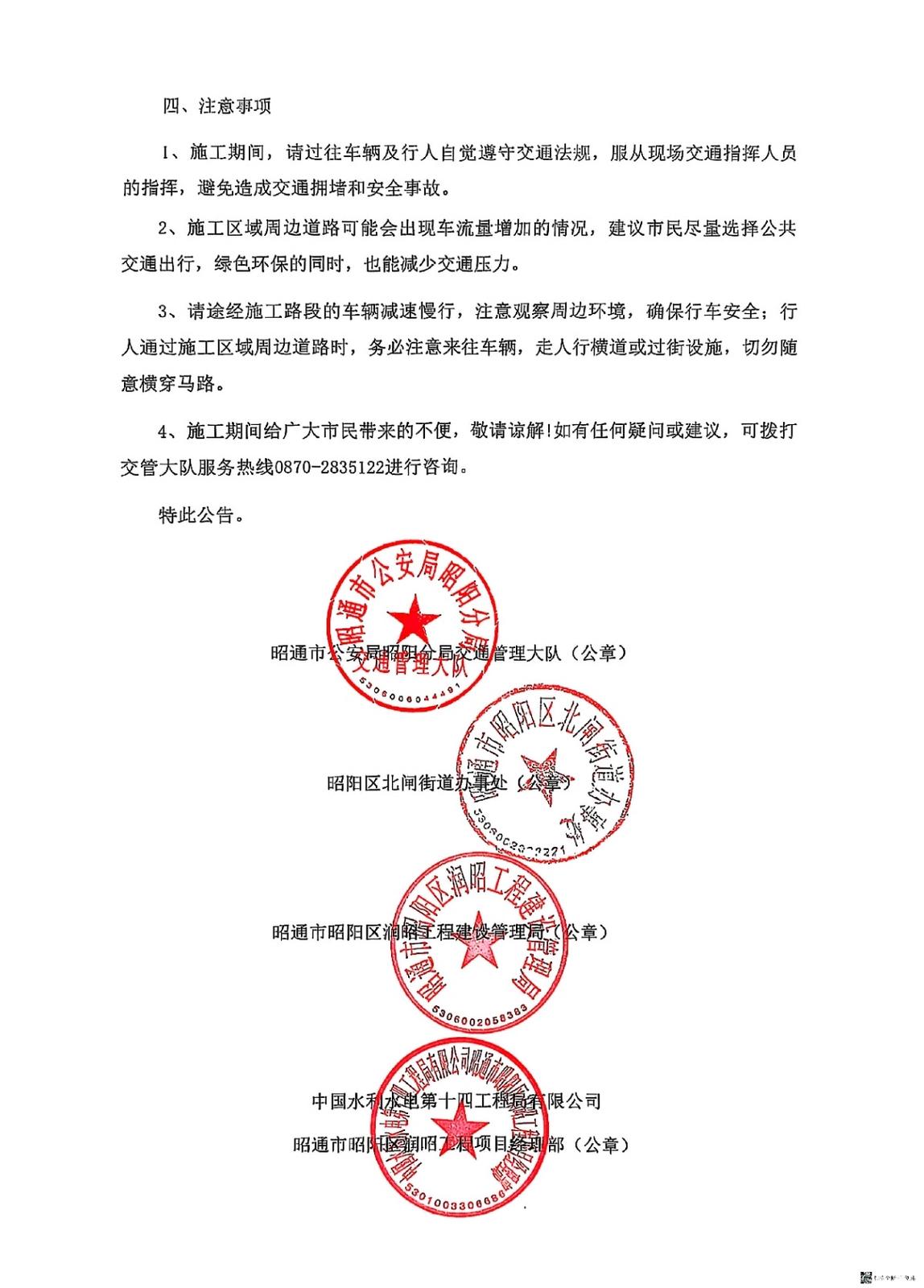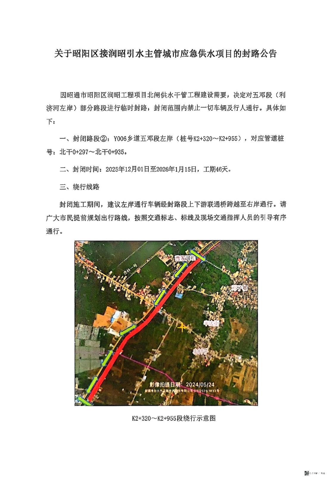 关于昭阳区接润昭引水主管城市应急供水项目的封路公告(二段)