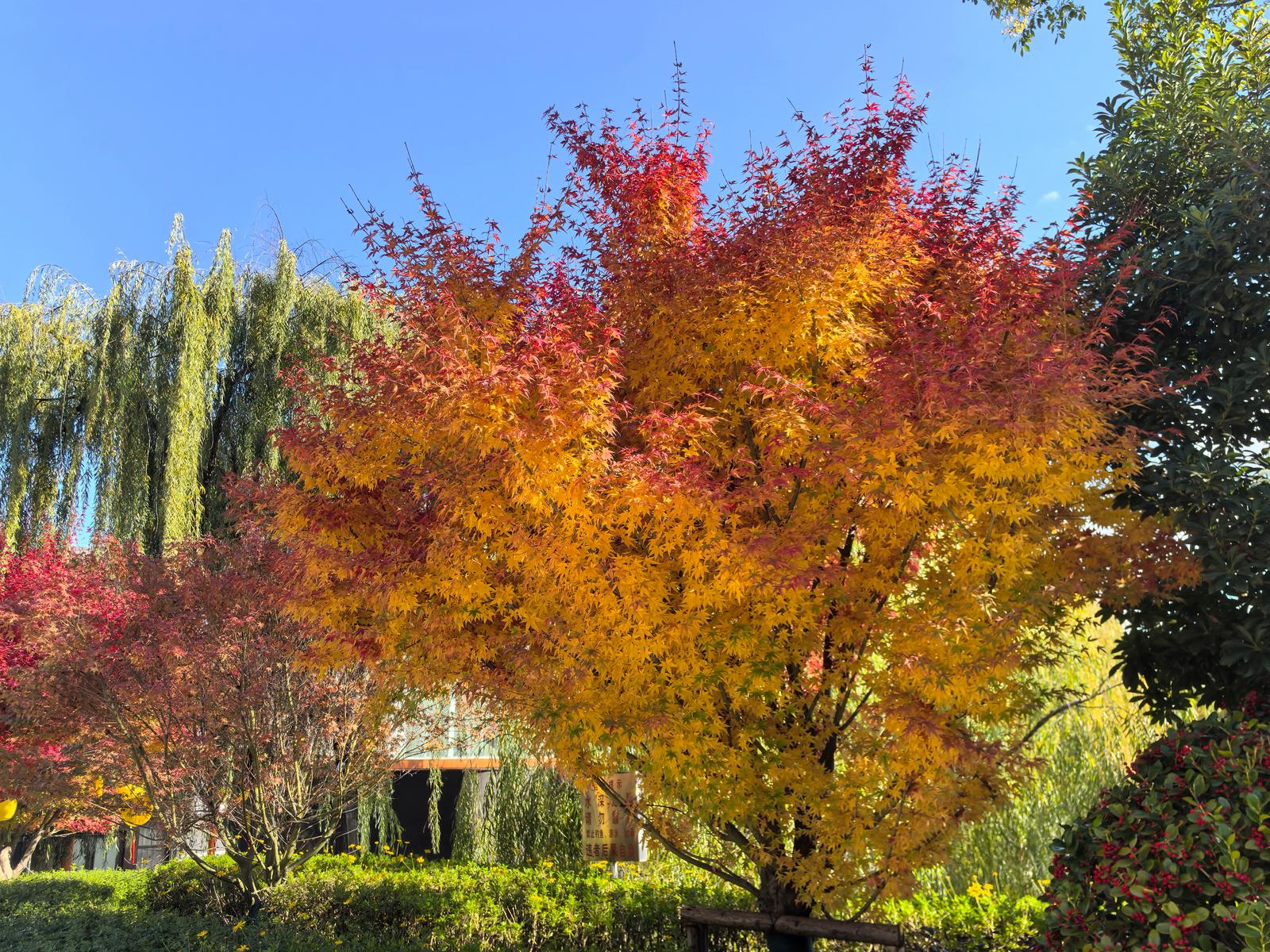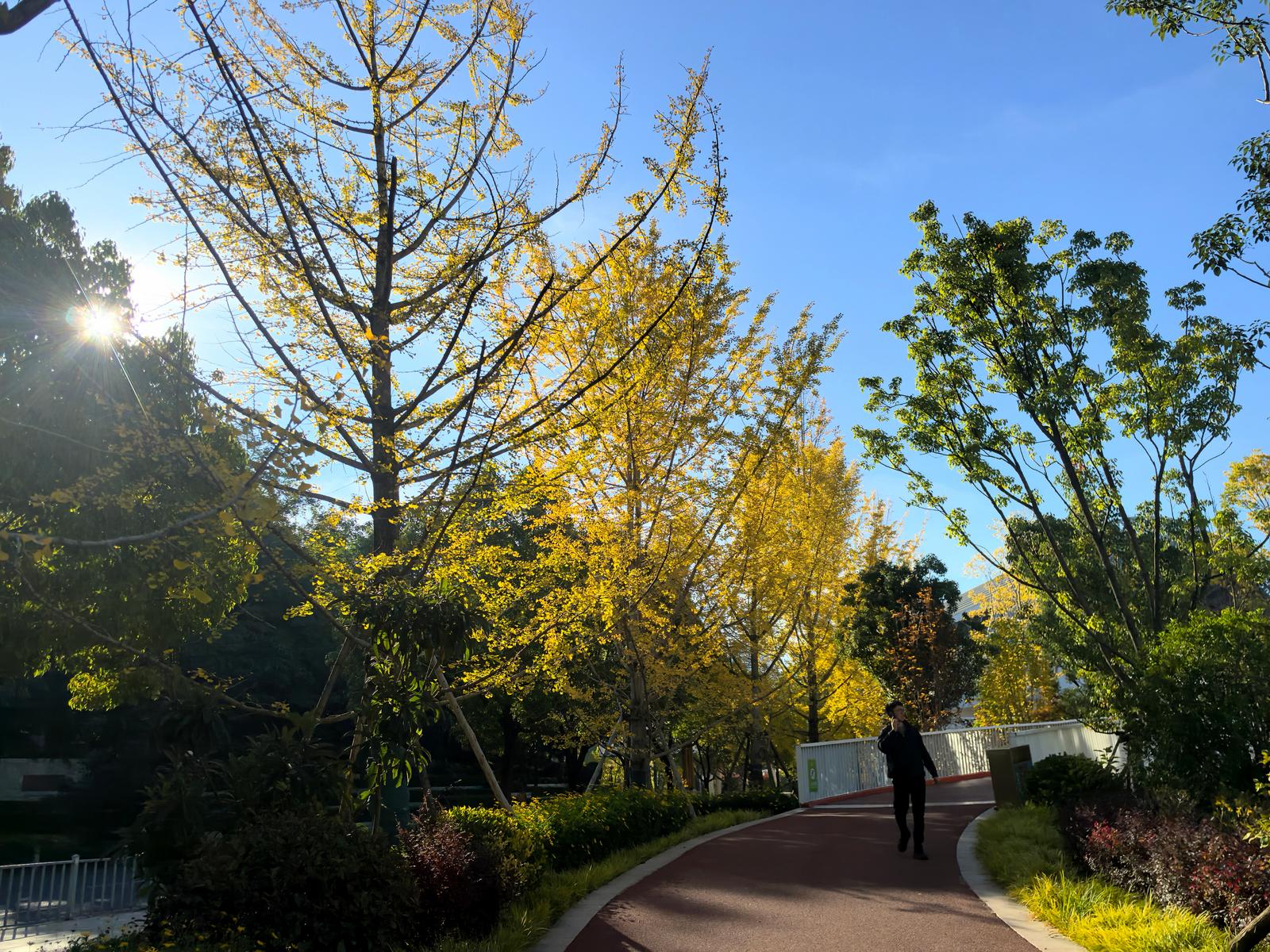 立冬过后,昭阳区元宝山城市体育公园迎来了一年中极具诗意的时节,园内枫叶褪去翠绿,换上热烈的“红装”;银杏枝叶挂满金黄,随风摇曳;柳叶也染上暖黄,与红枫、金杏相映成趣。趁着天气晴好,树叶未落,不妨前去欣赏。