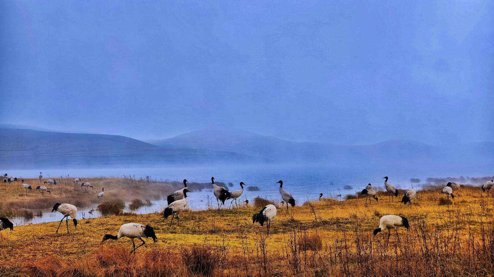 连日来,云南昭通大山包黑颈鹤国家级自然保护区迎来越冬鹤群迁徙高峰。据监测统计,截至11月26日飞抵大山包越冬的黑颈鹤数量就突破了2000只。