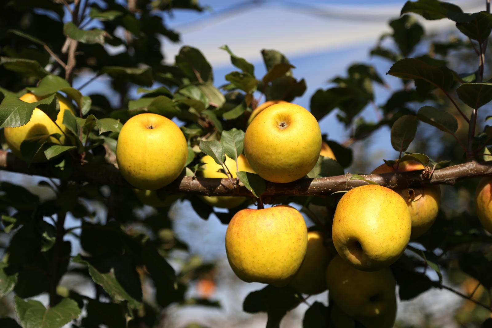11月28日,在昭通市洒渔镇白鹤村的苹果产业良种繁殖基地,试种4年的瑞雪苹果长势健壮,高达两米以上,黄绿色的苹果挂满枝头,一派丰收景象。凭借脆甜多汁、香气独特等优势,瑞雪苹果在市场上广受青睐,今年销售价达每市斤6至10元,成为苹果界的“明星”品种。