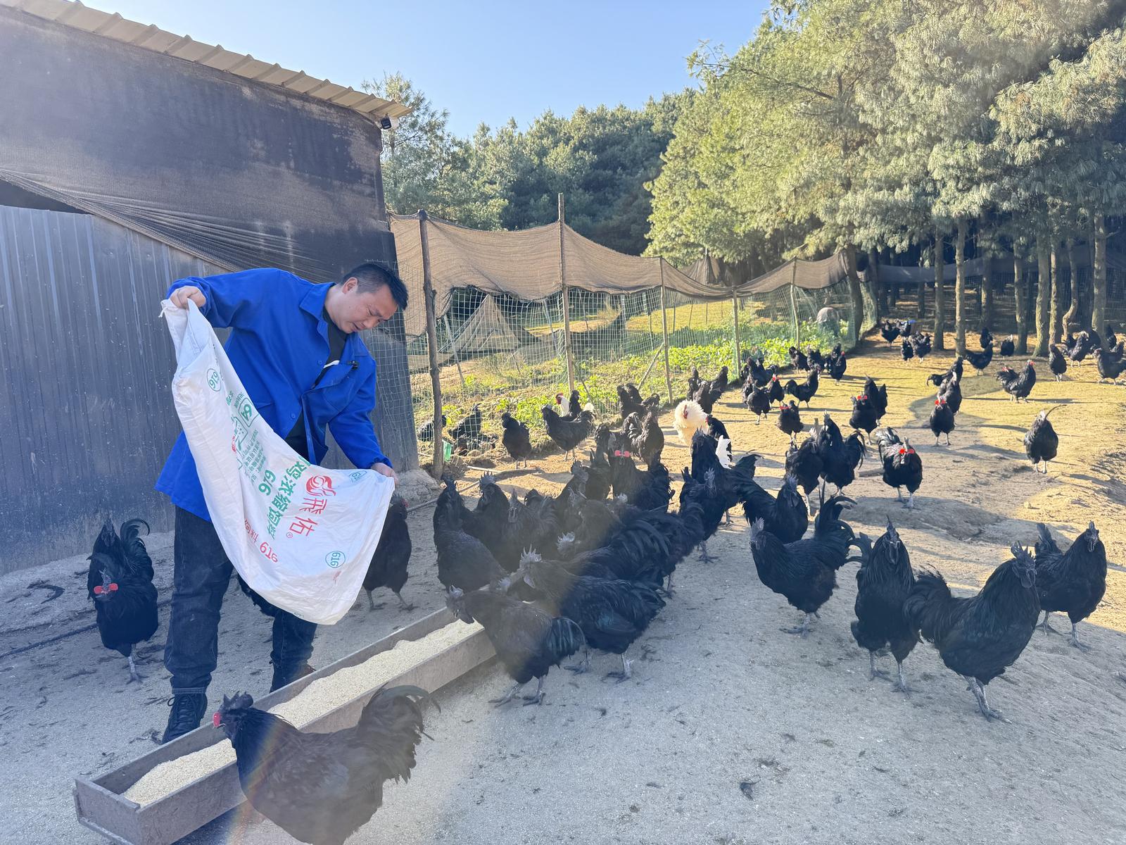 "我们的鸡是基本上喂了就往树林里面跑,跑着去吃虫子、啄草。"张涛说。年轻的张涛三十出头,浑身充满了干劲。张涛和妻子都是乐德古村本地人,2023年,在外奔波打工数年的张涛回到乐德古,流转了100多亩山林,开办了馨玥玺牧业乌骨鸡养殖场。张涛告诉记者,每只鸡都要喂养到十个月以上才出栏,为了保障鸡肉和鸡蛋的品质,他们采用最原生态的喂养方式。