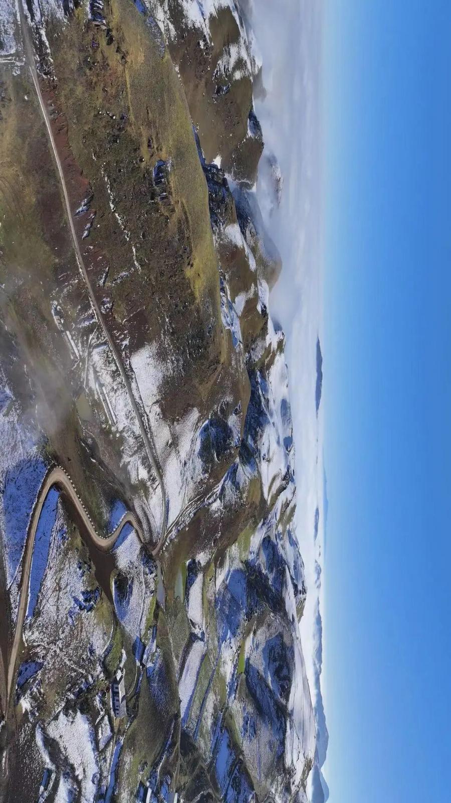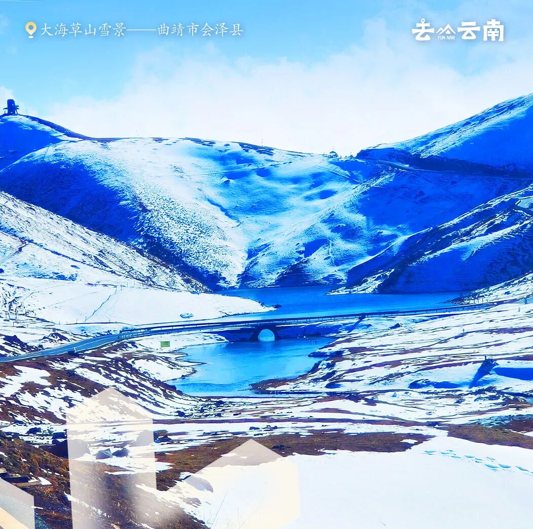 冬日来临,高山草甸褪去秋的黄绿,换上银白新装,宛如一片冰雪秘境,远山如黛,在雪的映衬下更显雄浑连绵。