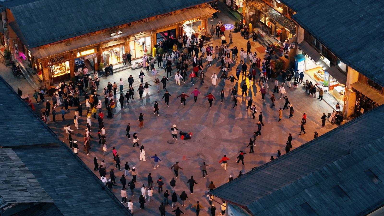 在迪庆藏族自治州独克宗古城,每当夜幕降临,居民与游客在月光下共舞,不分彼此。这样的场景在云南随处可见。这场夜间的文艺联欢,为城市注入了活力、促进了消费、增进了和谐,生动诠释了“主客共享”,成为连接人、城与夜的文化纽带。