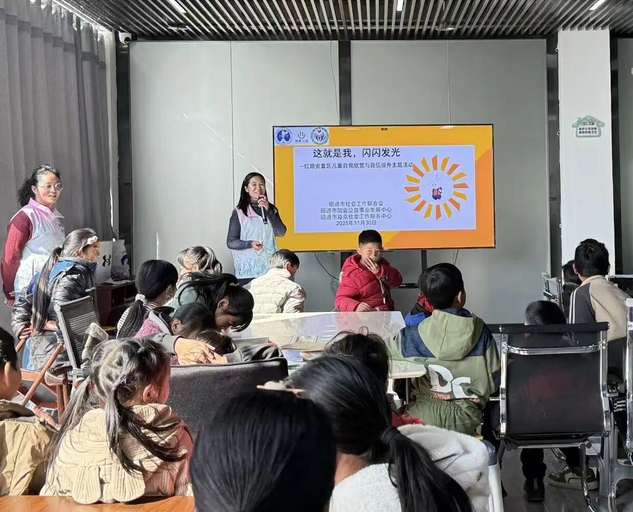 近日,北闸街道联合昭通市社会工作联合会与加壹公益在红路馨居开展“这就是我,闪闪发光”儿童自我欣赏与自信提升活动,42名儿童在互动中发现自我,在活动中提升自信。