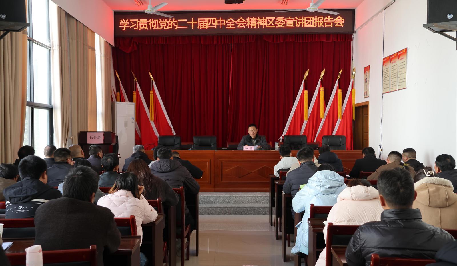 12月1日,昭阳区学习贯彻党的二十届四中全会精神区委宣讲团报告会在小龙洞乡举行,区委宣讲团成员、经济开发区党工委副书记、管委会主任郑大华作宣讲报告。小龙洞乡党政机关干部、村党组织书记、学校、医院负责人等100余人聆听宣讲,认真领悟会议精神。