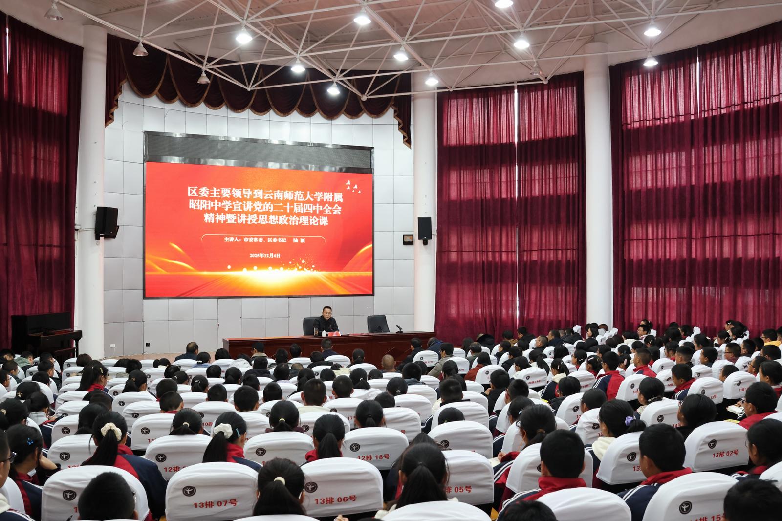 12月4日,市委常委、区委书记陆颖到云南师范大学附属昭阳中学宣讲党的二十届四中全会精神并讲授思想政治理论课,与学校师生面对面交流谈心,让大家对党和国家的大政方针有更深入的理解,对肩负的崇高使命有更明确的认识。