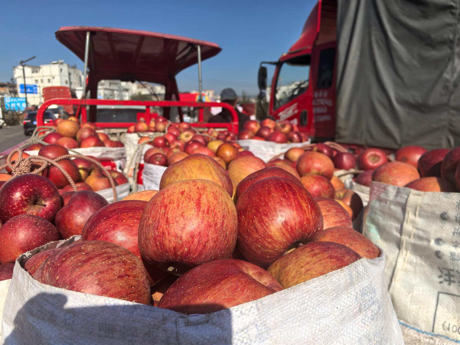 进入冬季,昭通“冰糖心”苹果大量上市,昭阳区最大苹果交易集散地——洒渔苹果交易市场一片火热。正午时分,载满苹果的农用三轮车、小货车仍源源不断驶入市场,市场上购销两旺,热闹异常。