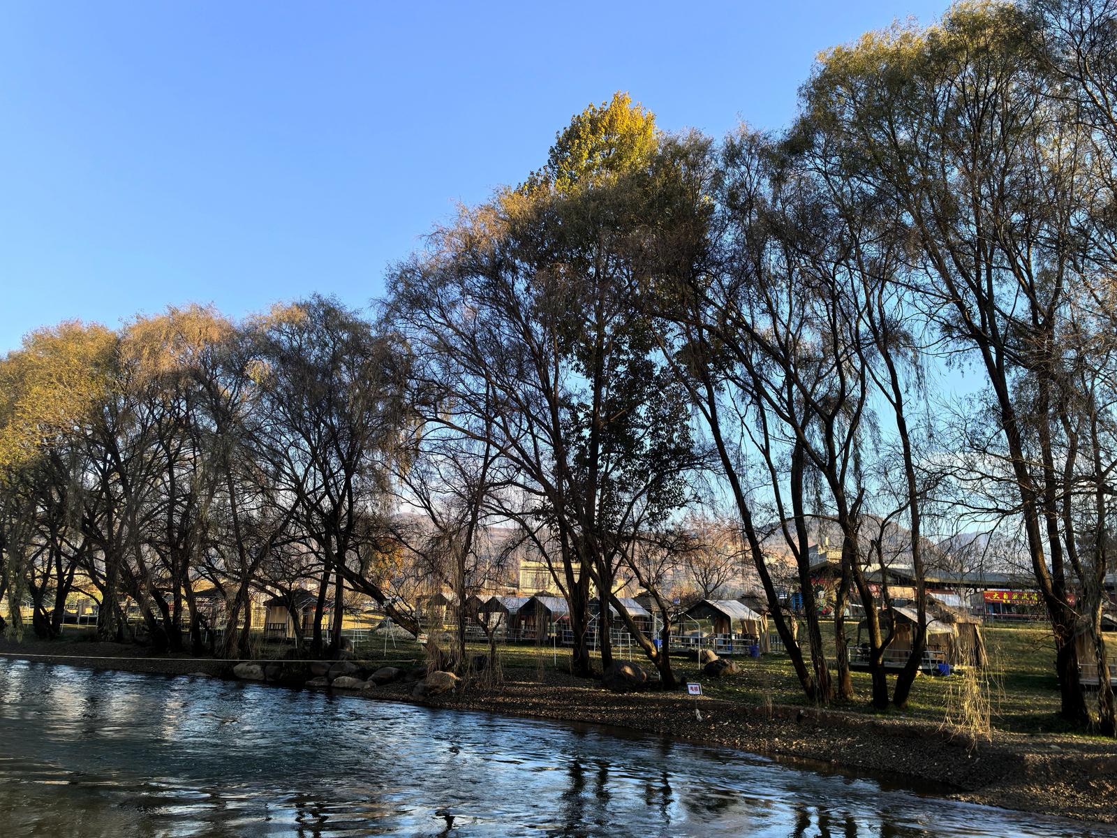 洒渔河畔冬景美 水清柳黄果飘香 (组图)