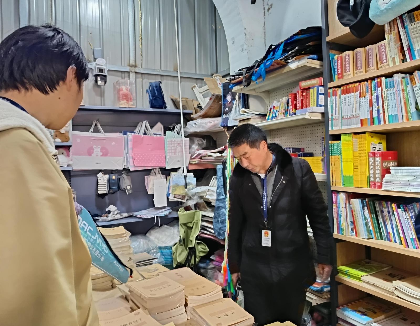 检查现场,坚持“全覆盖、无死角、重实效”原则,聚焦书店、文具店、商超等重点场所。检查组核查经营单位证照与商品进货渠道,严查盗版侵权等非法出版物;排查消防设施、疏散通道等安全隐患,并讲解消防安全知识。同时各部门工作人员还同步开展“扫黄打非”宣传,发放资料100余份,普及相关法律法规,凝聚社会共治合力。