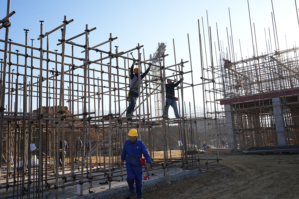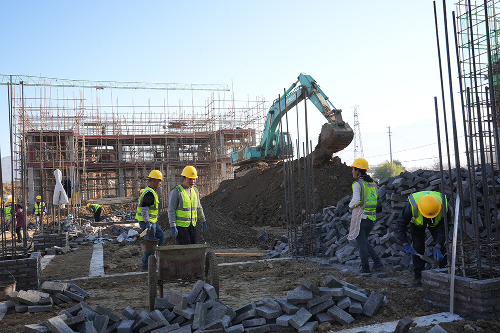 项目负责人介绍,项目基础工程已接近尾声,累计完成102栋楼房基础开挖,占总规划的95.3%,为地上主体施工奠定基础。目前,64栋建筑突破“正负零”进入主体施工阶段,其中34栋完成一层封顶,13栋实现二层封顶,1栋推进至第三层,施工节奏清晰可控。