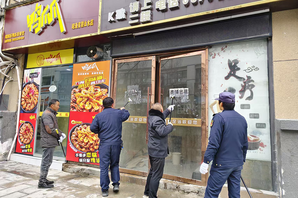 活动当天,志愿者手持清洁工具分组协作,对商圈公共区域、绿化带、人行道及卫生死角进行全面清理。他们清扫路面垃圾、擦拭公共设施,并规范商户门前秩序、引导车辆有序停放,确保商圈环境整洁美观。昭阳区疾控中心志愿者在清洁过程中,重点对公共区域进行卫生消杀,同时向商户和市民宣传冬春季传染病防护知识,将环境卫生与健康促进有机结合。昭阳区综合行政执法局志愿者向商户普及“门前三包”责任,强化其维护市容环境的主动性。