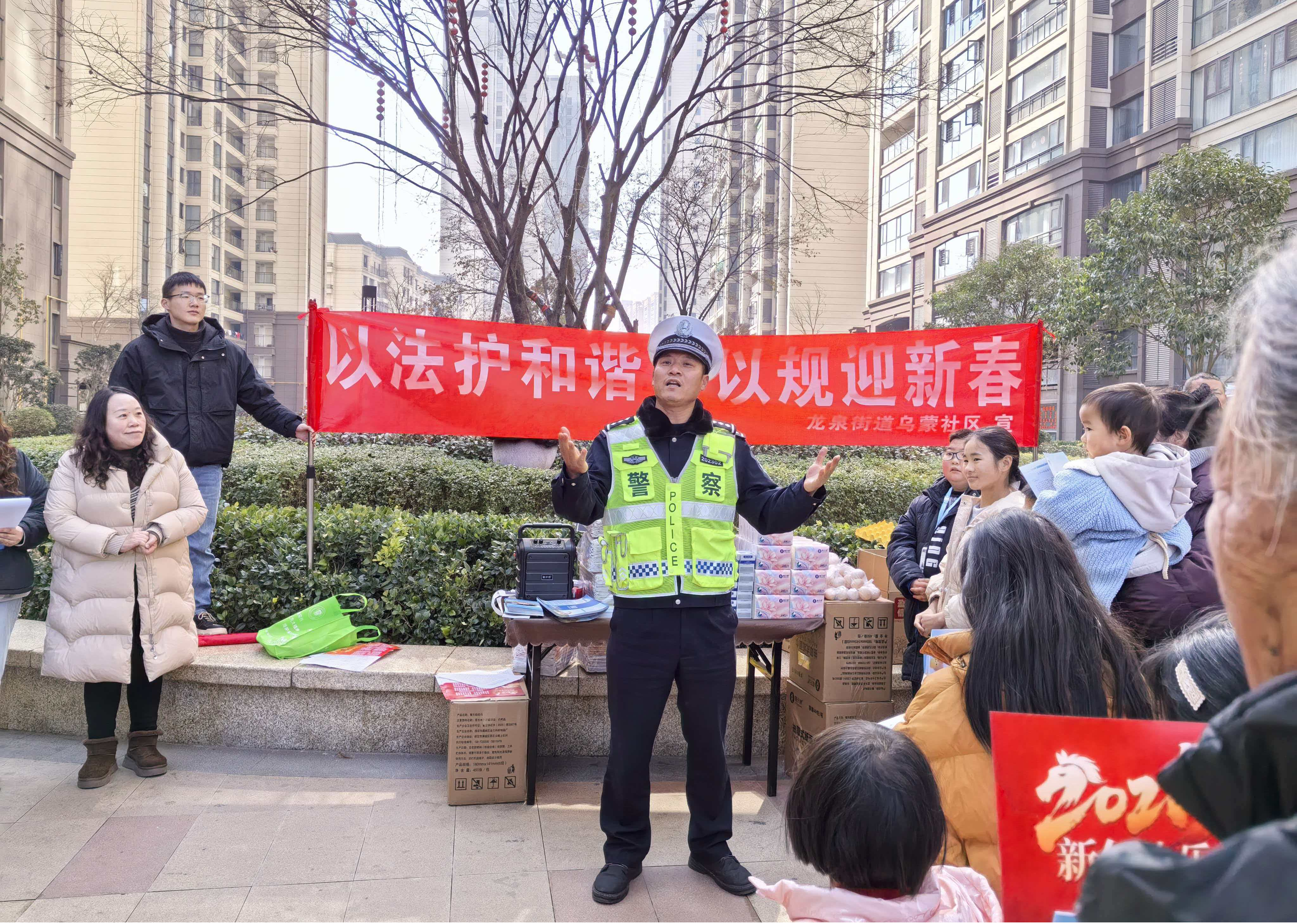 龙泉派出所民警聚焦电信网络诈骗高发态势,结合身边真实案例拆解常见诈骗套路,从“如何快速识别虚假信息”“遭遇诈骗后如何及时止损”等关键方面,细致普及反诈防骗技巧,反复叮嘱大家守好自家“钱袋子”;龙泉司法所所长围绕邻里纠纷、权益维护等居民常遇的生活场景,用通俗易懂的语言解读法律条文,指导居民遇到矛盾时依法维权、理性处理,引导大家主动学法、懂法、用法,让法治理念扎根基层;交警大队民警针对行人、电动车骑行、机动车驾驶等不同出行场景,逐一讲解交通规则,重点强调“斑马线礼让行人”“骑电动车佩戴安全头盔”“行人走人行横道”等关键要点,为居民出行安全保驾护航。