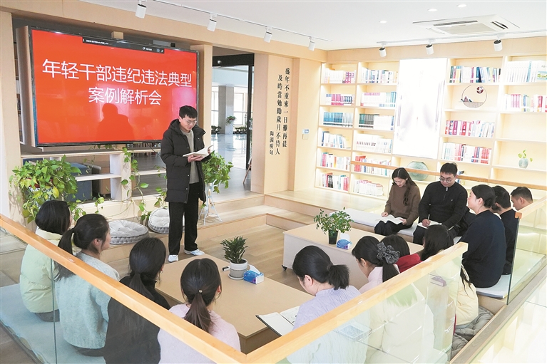 安徽省旌德县纪委监委坚持严管厚爱相结合,做实年轻干部教育管理监督,通过组建青年学习小组、举办读书分享会、开展案例解析会等方式,引导年轻干部廉洁履职、规范用权,帮助扣好成长前行的“风纪扣”。图为近日,该县人民法院年轻干部在青年学习小组会上开展典型案例解析。 汪悦磬 摄