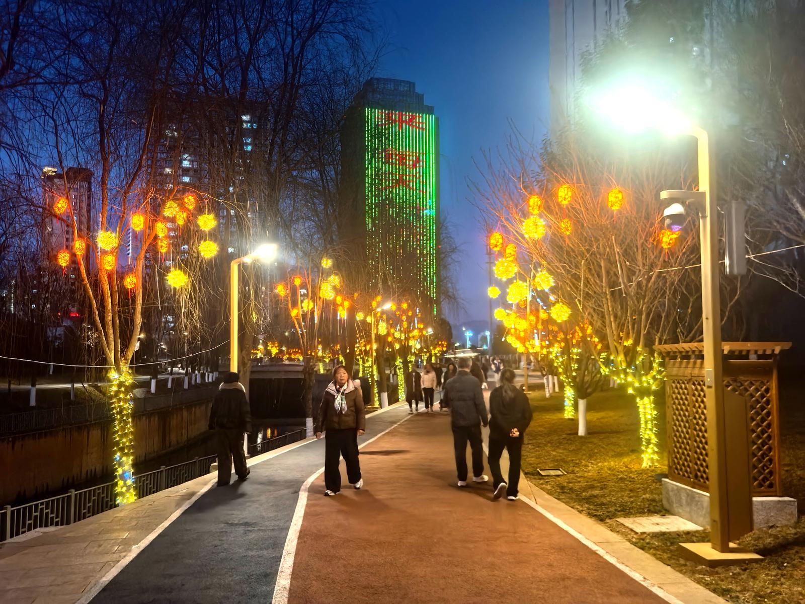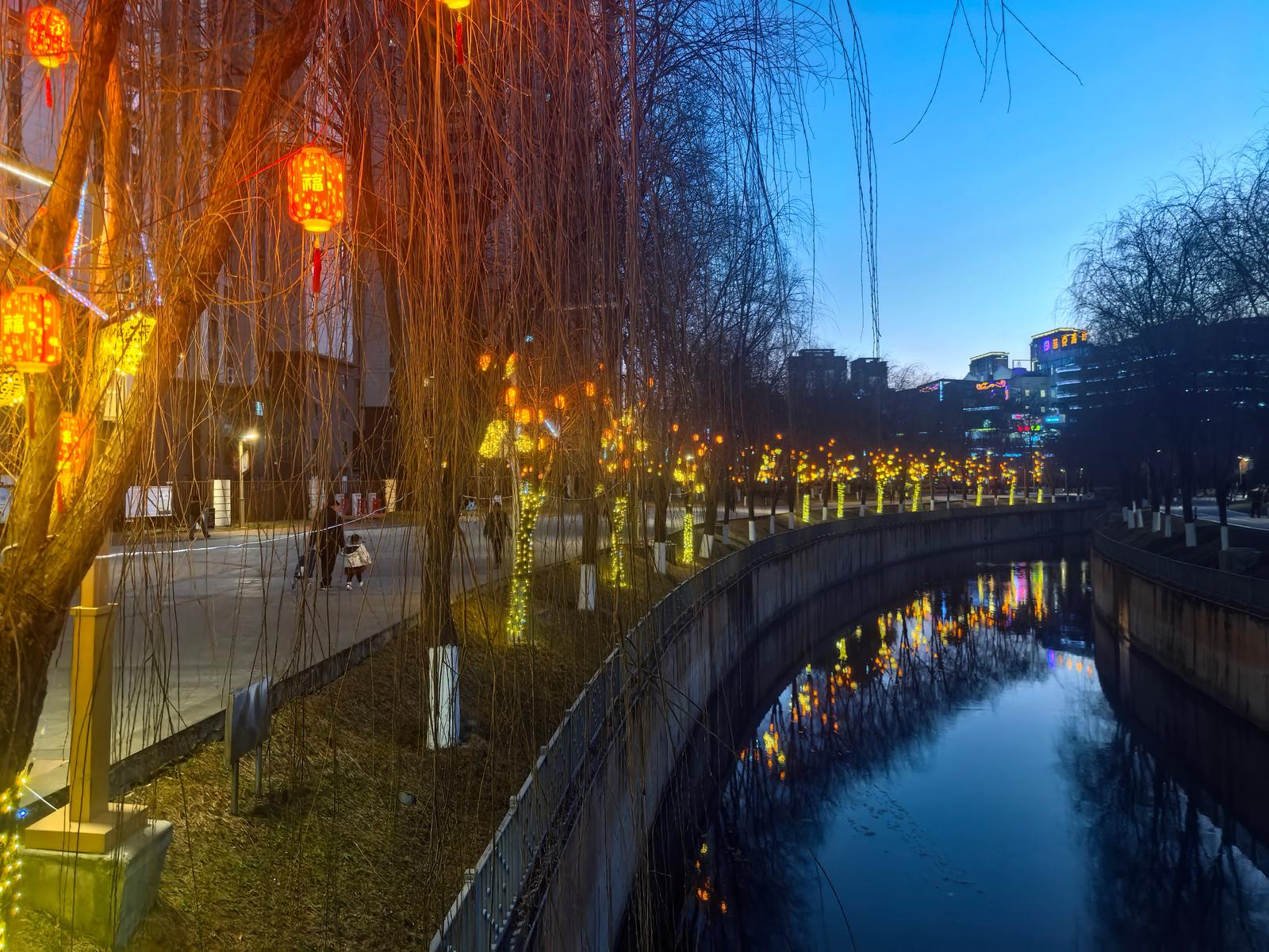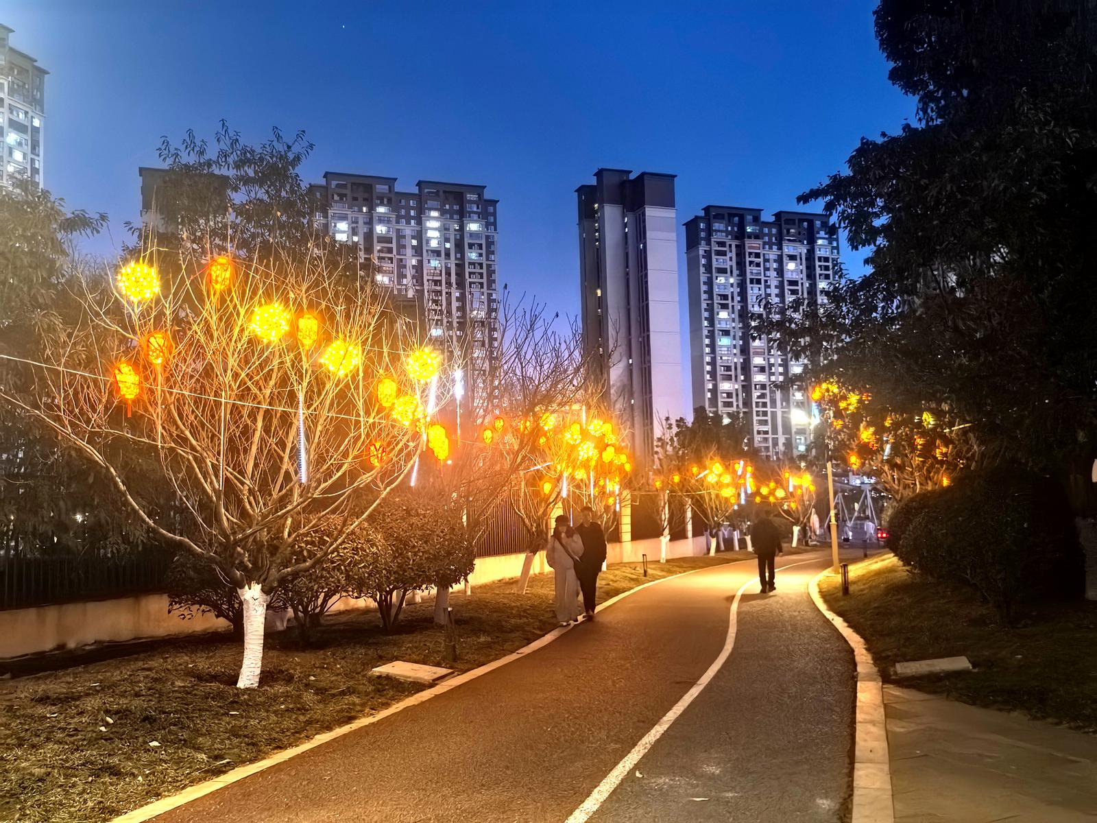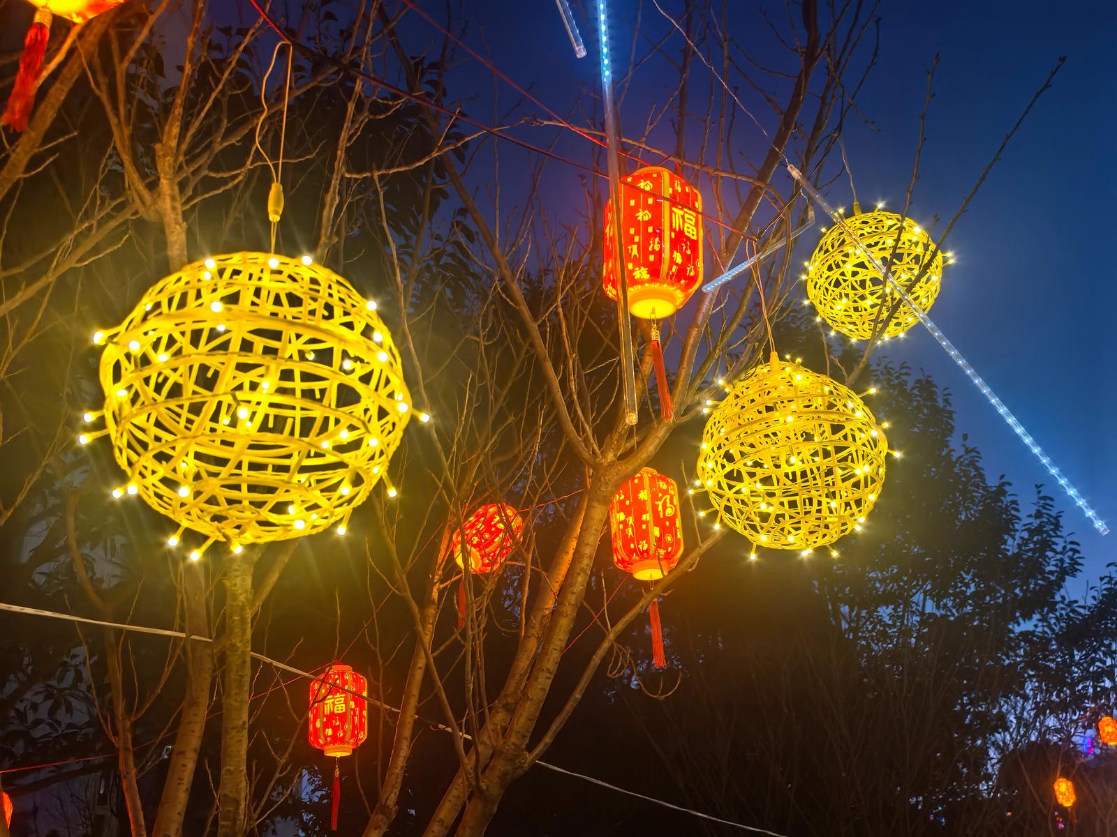 2月9日晚,记者在昭阳区乌蒙水乡公园看到,公园北侧春节亮化工程已提前亮灯,红灯笼、黄灯笼、满天星等灯饰将公园夜景装扮得流光溢彩、璀璨夺目,为即将到来的马年新春增添了浓郁的喜庆氛围。