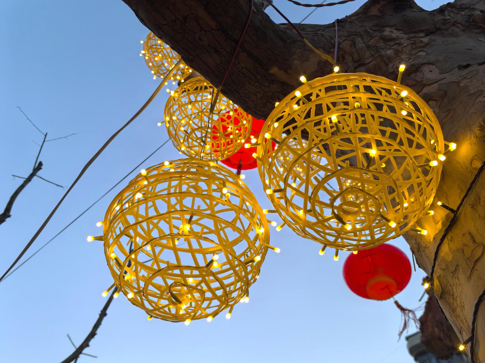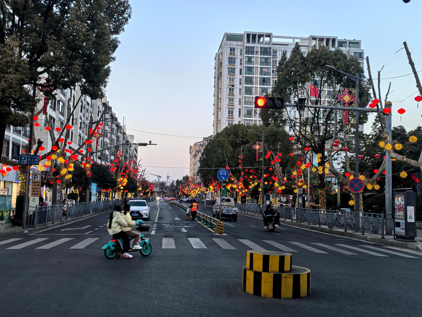 2月12日晚,记者先后走访南北顺城、北正街、海楼路、青年路、公园路等城区主要街道,以及罗炳辉广场、主席像广场、箭道广场等市民休闲聚集地。一串串红灯笼、黄灯笼高高悬挂,满天星灯饰点缀枝头、沿街铺展,暖光与夜色交相辉映,将城市装扮得流光溢彩、金碧辉煌。