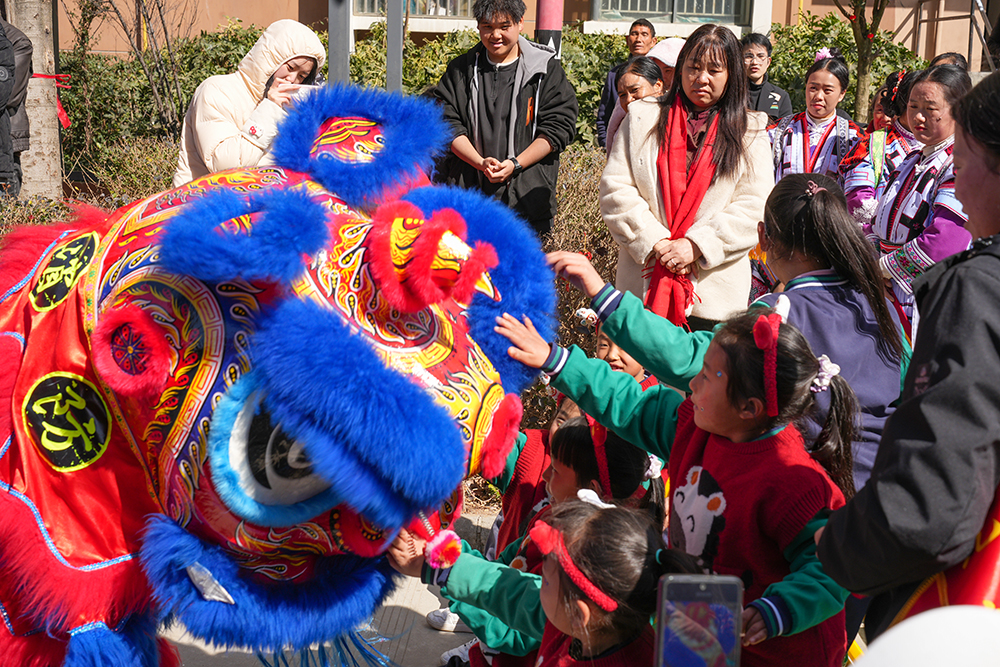 活动在昭阳区应急救援大队的狮子舞中拉开帷幕,两头雄狮灵动威武、气势昂扬。表演结束后,雄狮走近孩子们身边,大家争相触摸狮头,祈福新的一年平安顺遂、吉祥好运。