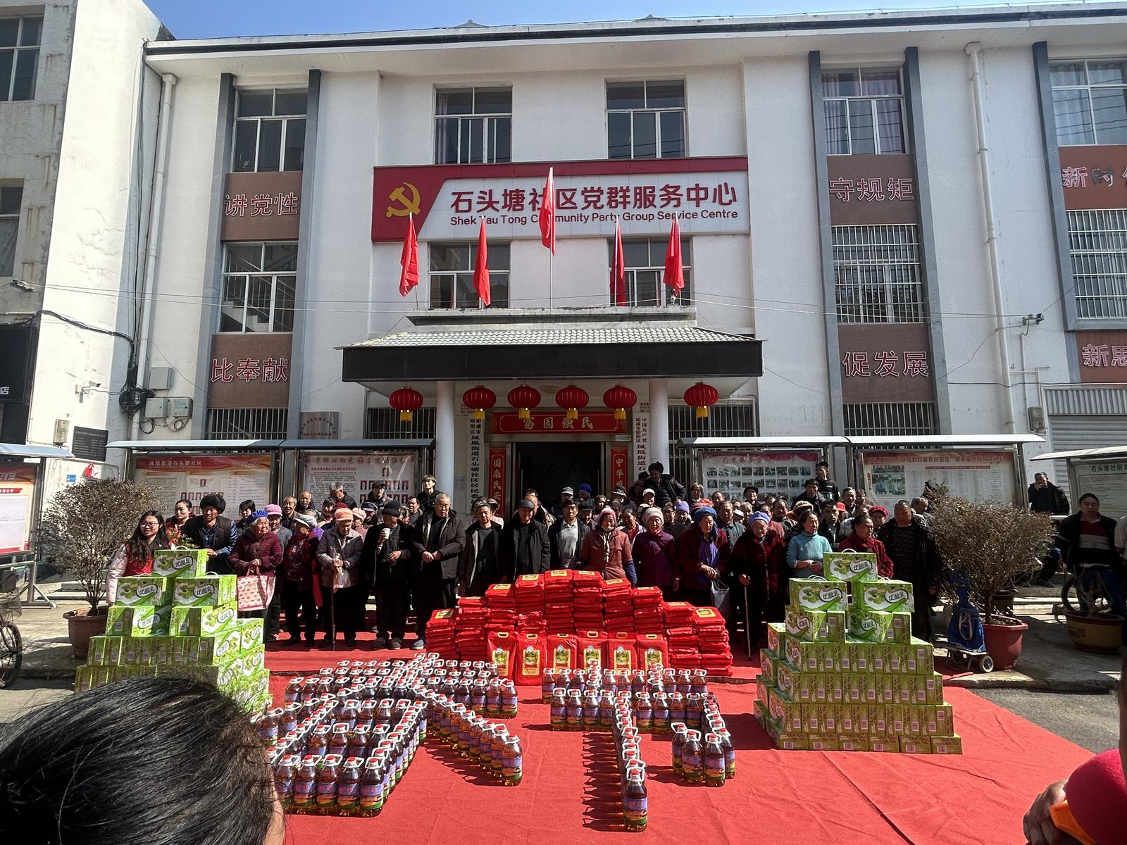 石头塘社区联合辖区爱心企业,为150户困难家庭送上大米、食用油、牛奶等慰问物资,企业爱心助力,让困难群众切实感受到社会大家庭的温暖。元宝路社区同步开展慰问,为20户困难群众发放大米、食用油,贴心送上节日祝福。