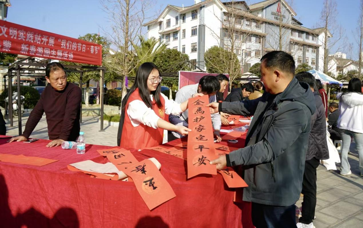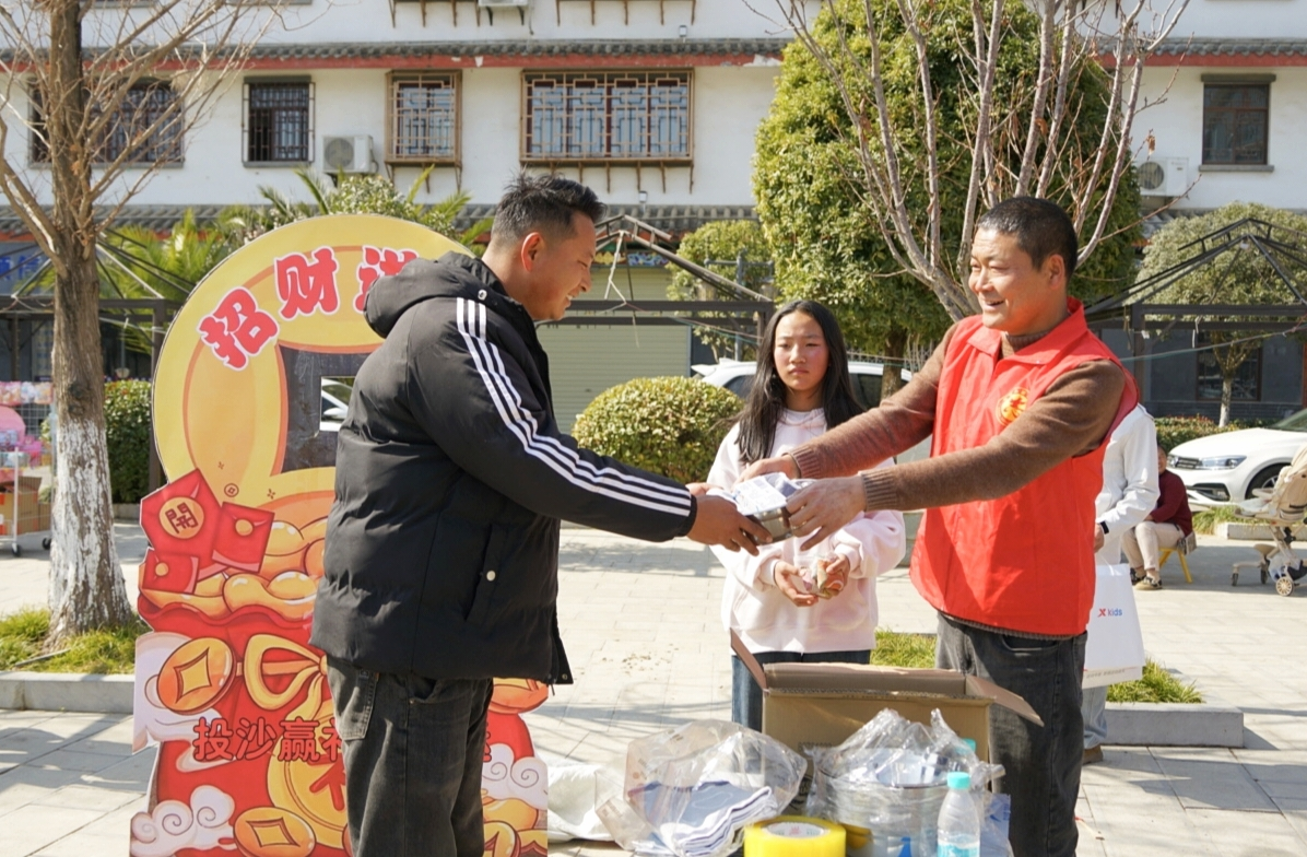 “绘彩迎春”亲子互动区欢声笑语不断,家长与孩子携手创作,在色彩中感受新春乐趣;“招财进宝”投沙包、“套福回家”套圈等民俗游戏区排起长队,新鲜蔬菜瓜果整齐陈列,居民们踊跃参与,套中即可将新鲜食材与新春福气一同带回家,趣味十足。活动所有春联、拓印纪念品及游戏奖品均免费发放,让群众实实在在地共享文化惠民成果。