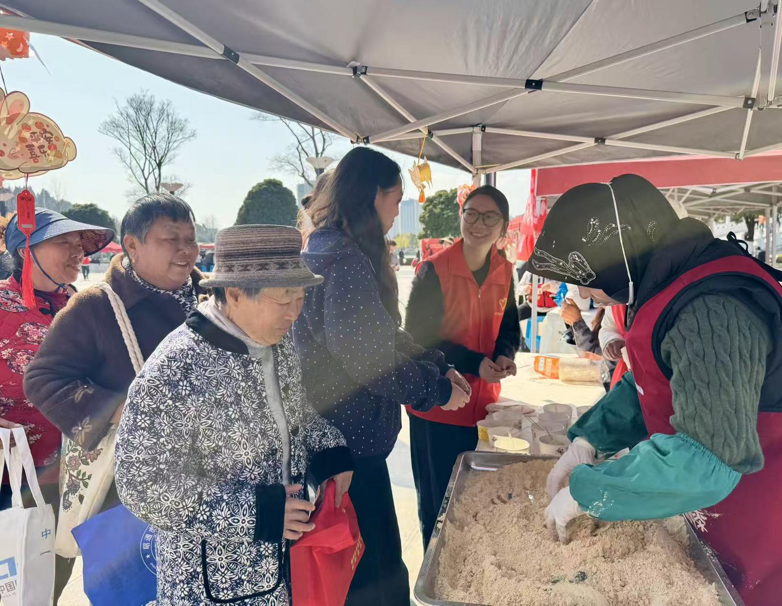 新春民俗集市游园活动六大主题区域人气高涨。“寻味家乡”区糖画、丝窝糖摊位前,丝窝糖商家表示“今天预计送出2000份,群众太热情了”;“寻巧家乡”非物质文化遗产手工坊内,群众体验写福字、拓画;“寻乐家乡”民俗游园区投壶、射箭等传统项目吸引众多参与者,集章抽“盲盒红包”环节更添惊喜。