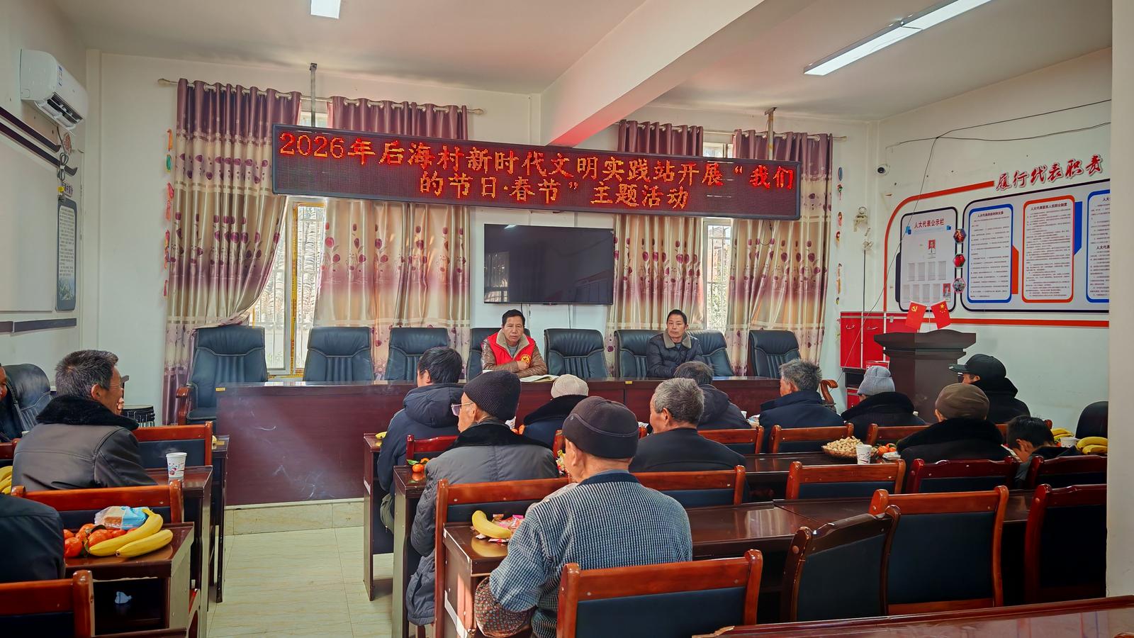 除走访慰问外,各村(社区)还结合实际开展特色新春主题活动,丰富群众精神文化生活。后海村组织“我们的节日·春节”文明实践主题活动,讲解春节由来与传统习俗,与群众话家乡、谈变化、展未来,持续推进移风易俗,引导群众摒弃不良习俗;土城社区精心策划,召开务工返乡人员及春节双拥两场座谈会,凝聚乡贤智慧,收集家乡发展建议,分享优质就业岗位资源,拓宽群众务工渠道,向退役老兵致以新春祝福与崇高敬意,了解老兵生活困难,做好退役军人服务保障工作,激发老兵参与社区建设的积极性。