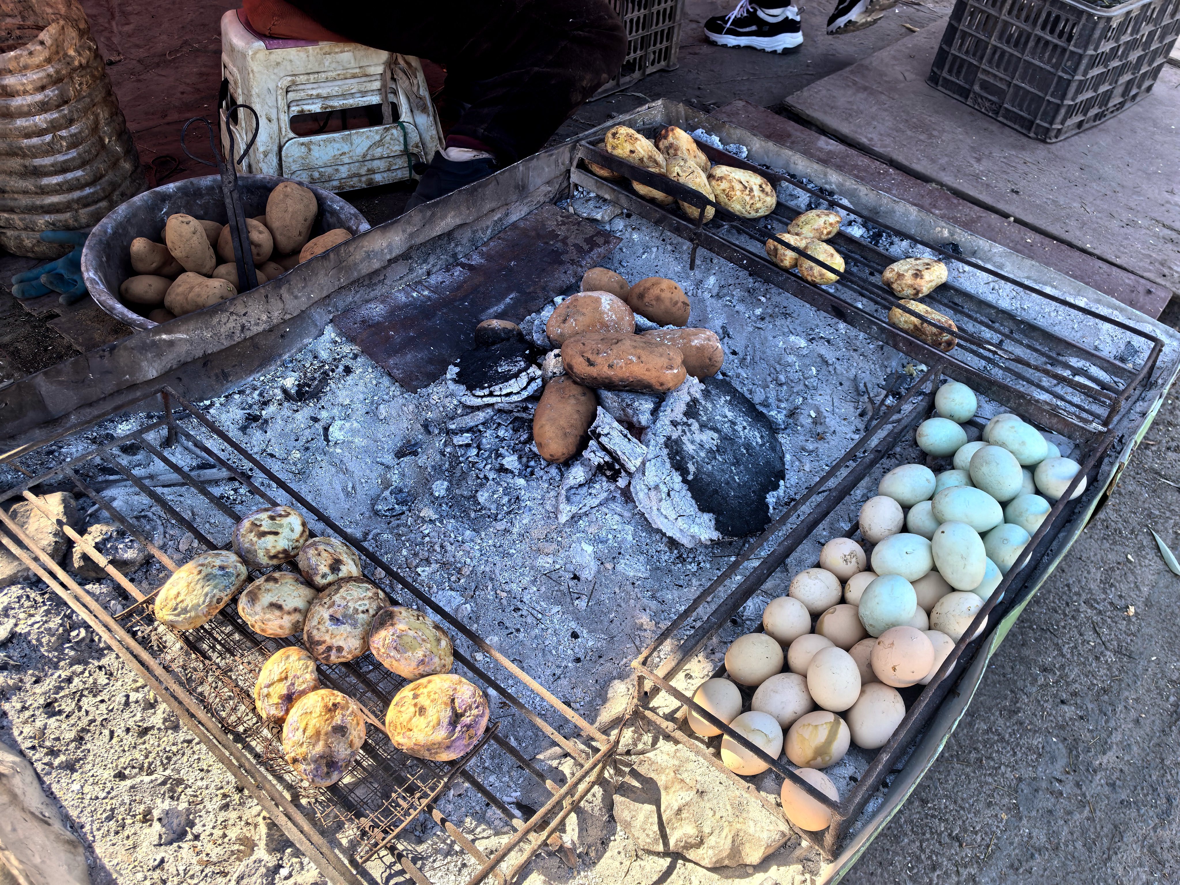 在昭阳区凤苏公路半山腰(大山包一级公路分路至苏家院镇路段)的烧洋芋摊成为过往食客的“打卡地”。